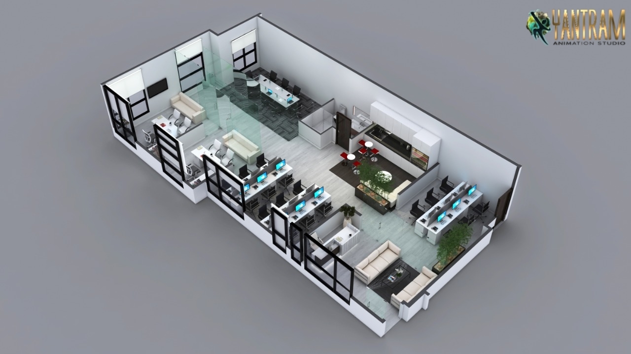 Cgmeetup 3d Floor Plan Of Commercial Office Design By 3d Architectural Animation Chicago Illinois By Yantram Architectural Design Studio